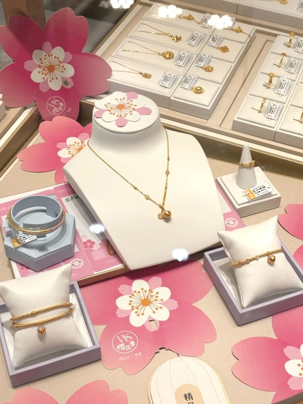 此次推出的櫻花限定城市伴手禮,靈感源自三月櫻花的純潔與美好。武商金攜手非遺匠人,巧妙融合武漢地標與櫻花元素,展現(xiàn)一款款兼具藝術(shù)美感與文化底蘊的文創(chuàng)商品。其中,櫻花·平安鈴系列首飾套裝尤為引人注目,黃金手串、手鐲、耳環(huán)、手鏈、項鏈五款產(chǎn)品,每一款都蘊含著“鈴鐺一響,黃金萬兩”的美好寓意,櫻花象征美好愛情,黃金則寓意事業(yè)有成,寓意著愛情事業(yè)雙豐收。這些以999足金與琺瑯工藝精心打造的輕奢級文創(chuàng)商品,不僅展現(xiàn)了武漢的城市氣質(zhì)與商業(yè)基因,更將櫻花文化深度融入其中,開創(chuàng)了城市文化IP的新篇章。