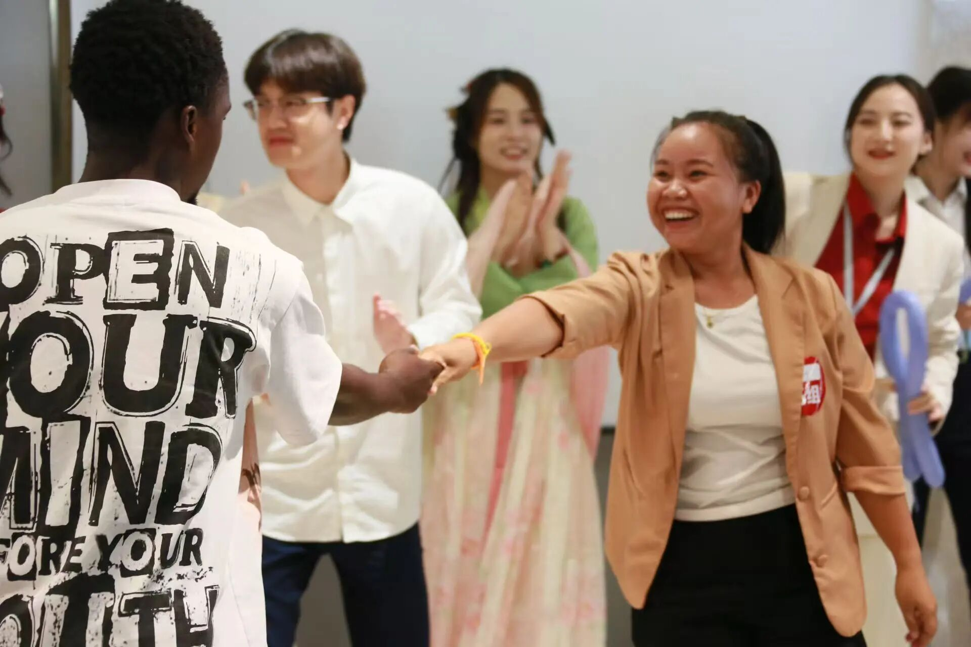 活動(dòng)在濃厚的東方禮韻之中拉開(kāi)序幕,三組身著精美漢服的接待人員優(yōu)雅迎賓,一舉一動(dòng)皆展現(xiàn)著中式待客之禮,嘉賓們?cè)讵?dú)具武漢特色的“江豚廣場(chǎng)”主題雕像前合影,隨后在趣味簽到中完成分組,現(xiàn)場(chǎng)氛圍瞬間變得輕松而融洽。